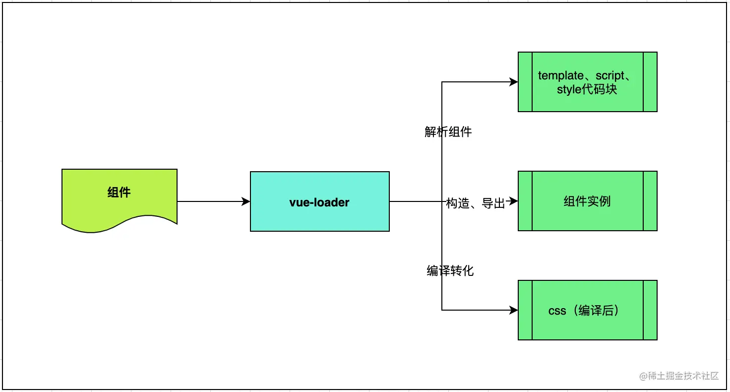 注意,这里讲的只是 vue-loader 对 .vue 文件的处理部分,不涉及 HMR、配合 Devtool 的逻辑,有兴趣的同学可以自行了解~