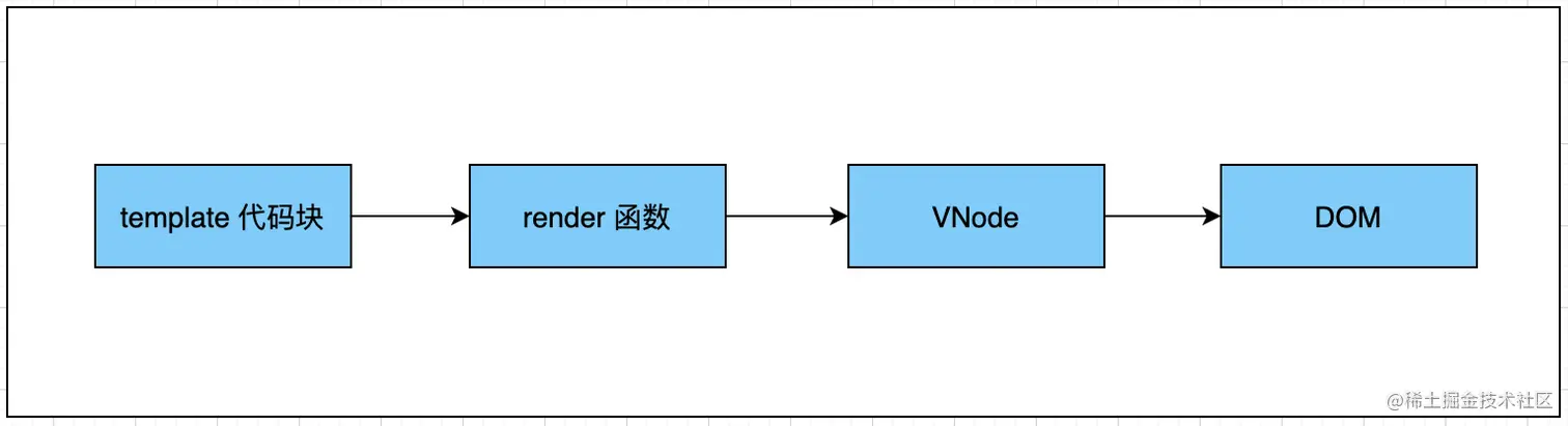 了解过 Vue 模版编译过程的同学,我想应该都知道 template 会被编译成 render 函数,然后会根据 render 函数创建对应的 VNode,最后再由 VNode 渲染成真实的 DOM 在页面上: