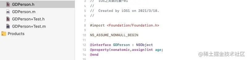 接下来我们就一步一步的探索:首先我先创建一个继承NSObject的GDPerson,在创建一个GDPerson+Test的分类]