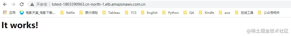 在浏览器中输入建好的ALB的DNS可以看到httpd镜像已经正常运行