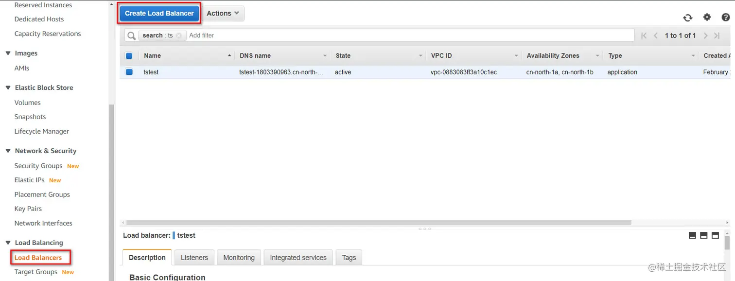 从中控台进入EC2界面,选择Load Balancer并点击Create Load Balancer
