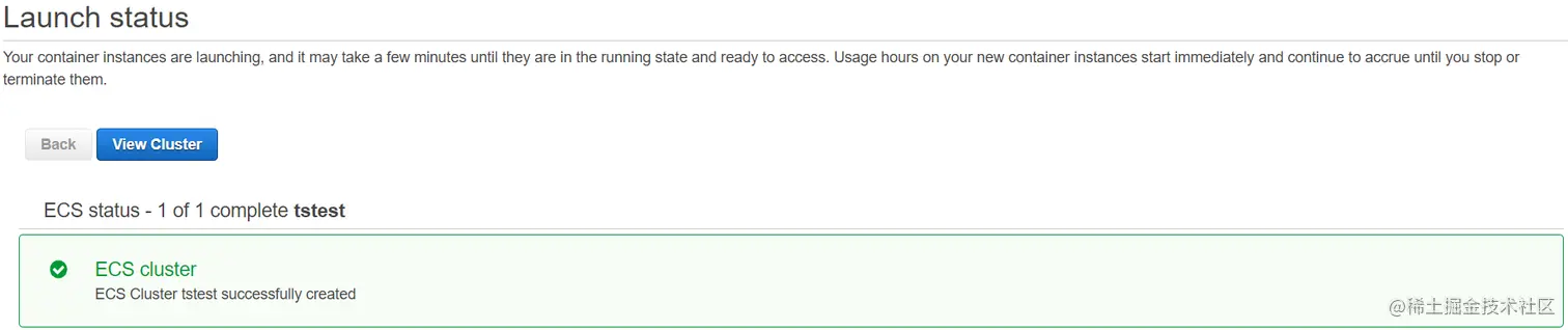 在Cluster Name中输入新建ECS集群的名称,比如“tstest”,然后点击“Create”