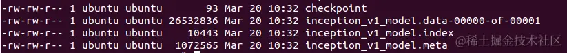 这是一个二进制文件,它包含了所有的权重、偏差、梯度和其他所有变量的值。这个文件有一个扩展名.ckpt。然而,Tensorflow从0.11版本中改变了这一点。现在,我们有两个文件,而不是单个.ckpt文件: