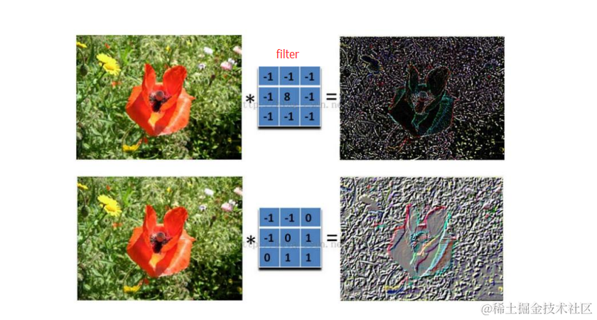 • 在卷积层中每个神经元连接数据窗的权重是固定的,每个神经元只关注一个特性。神经元就是图像处理中的滤波器,比如边缘检测专用的Sobel滤波器,即卷积层的每个滤波器都会有自己所关注一个图像特征,比如垂直边缘,水平边缘,颜色,纹理等等,这些所有神经元加起来就好比就是整张图像的特征提取器集合。