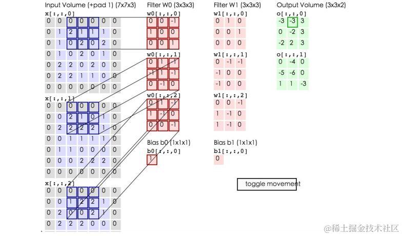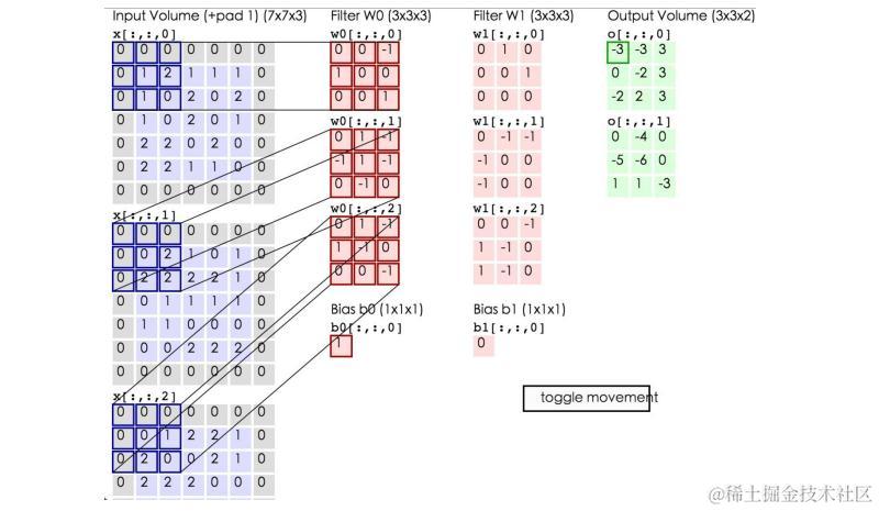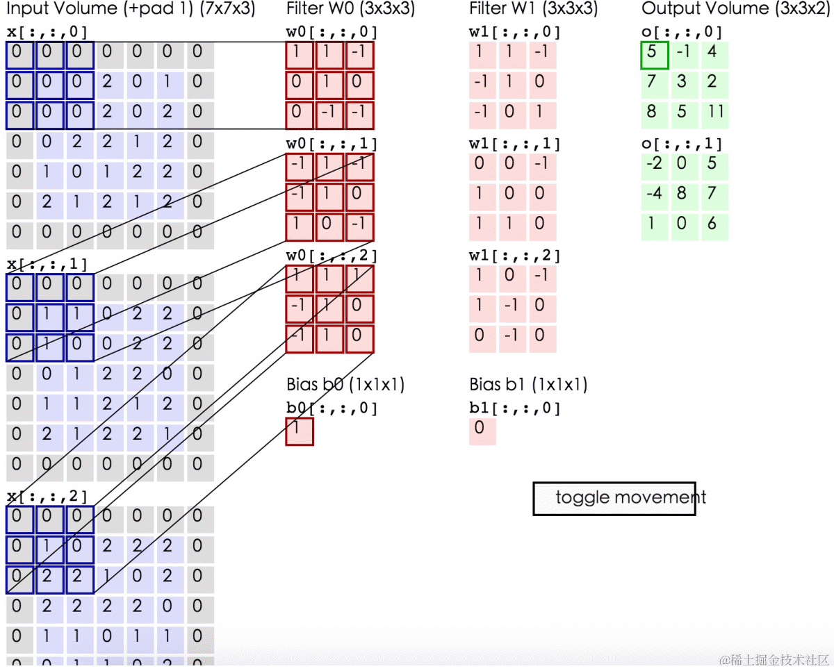 下面的动态图形象地展示了卷积层的计算过程: