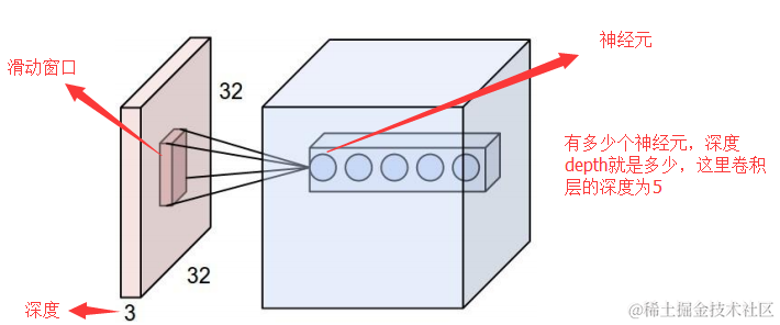 它和原图像,也就是输入的大小(神经元个数)、滤波器的大小和滤波器在图像中的滑动步长都有关!