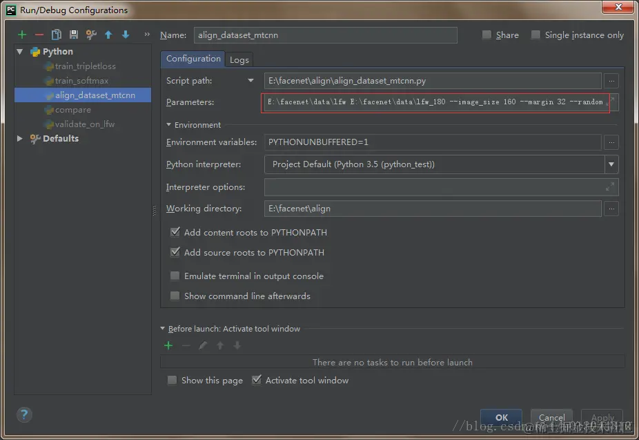 比如我的是:E:\facenet\data\lfw E:\facenet\data\lfw_160 --image_size 160 --margin 32 --random_order