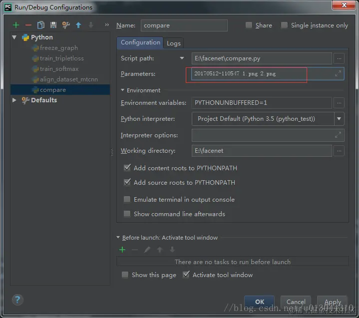 如果在pycharm中运行,按照同样的方法配置以上参数如下: