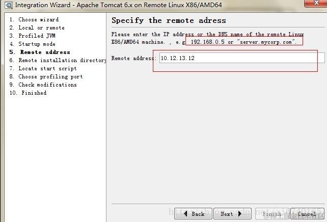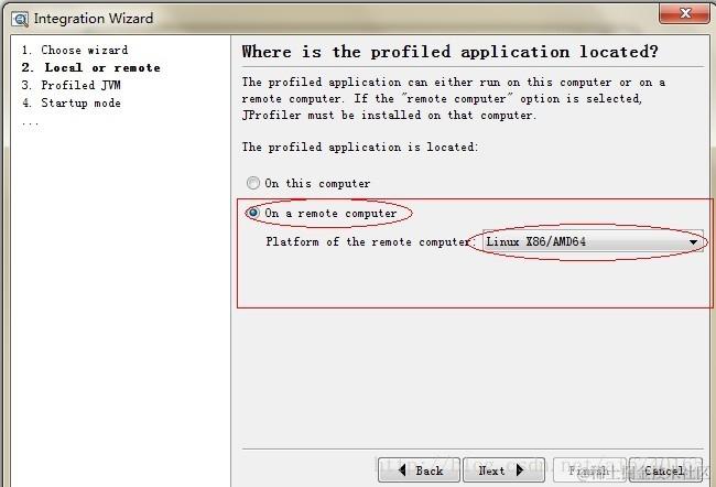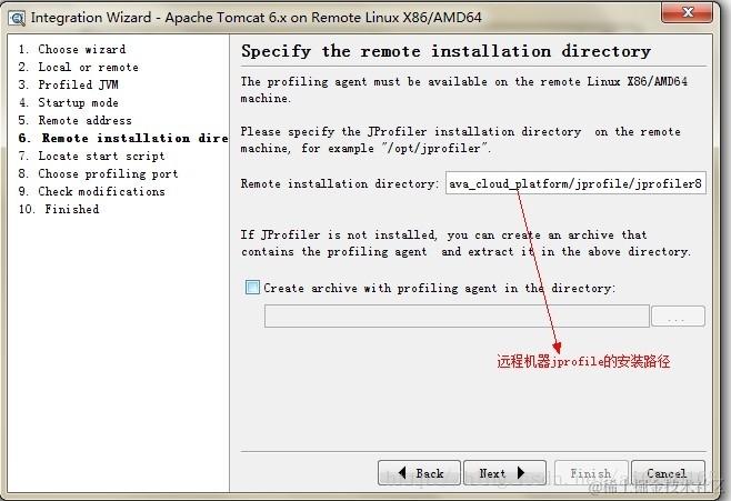 8、输入远程主机上Jprofiler的安装路径