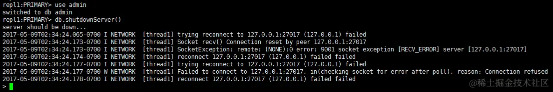 通过rs.status()可以看到从复制集192.168.168.130:27017变成了主复制集: