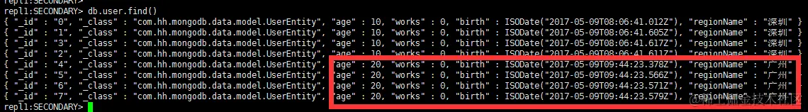 同时可以看见一下两个从复制集已自动完成数据备份: