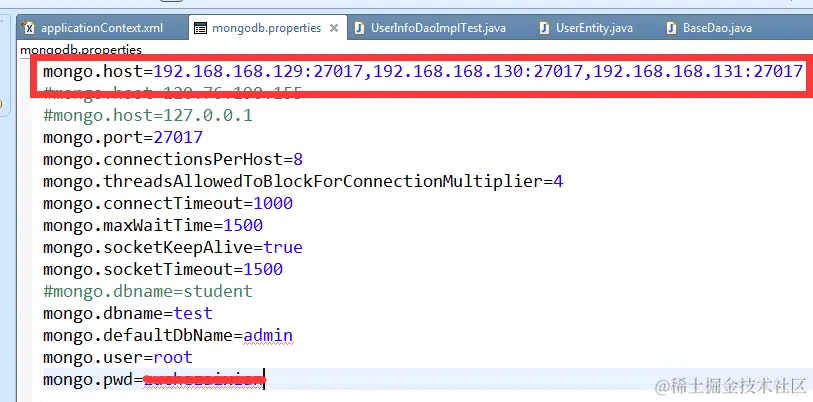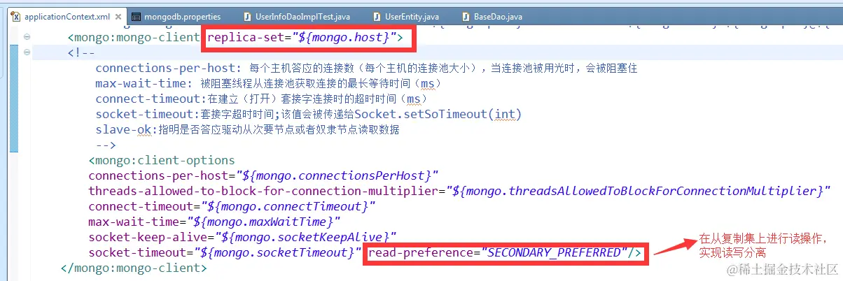 我们这里暂时没有启用用户认证;在options里添加 readPreference=secondaryPreferred可以实现读写分离,读请求优先到Secondary节点。