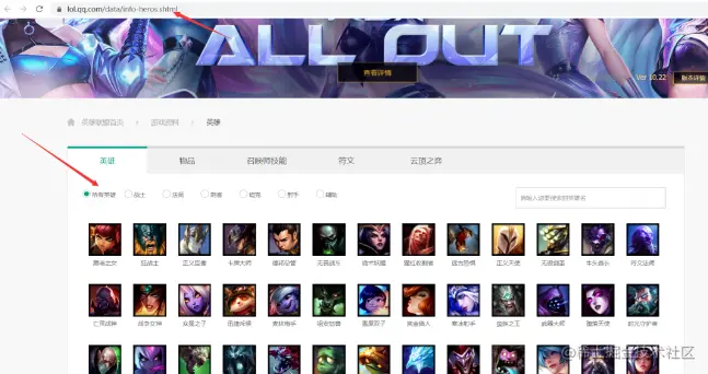 进入了所有英雄的页面,随便选择一个英雄进行查看