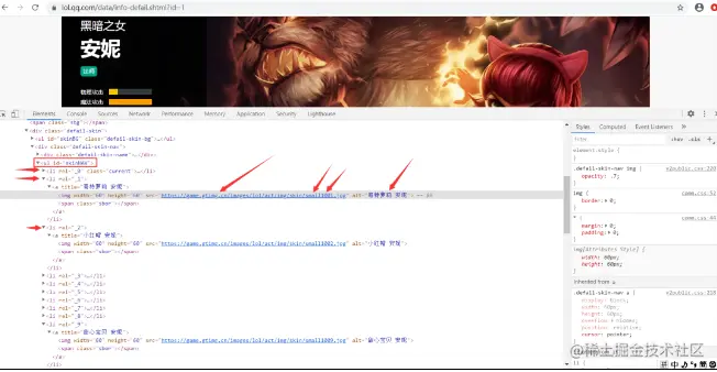 一些英雄的皮肤URL是规律的,比如安妮这样: