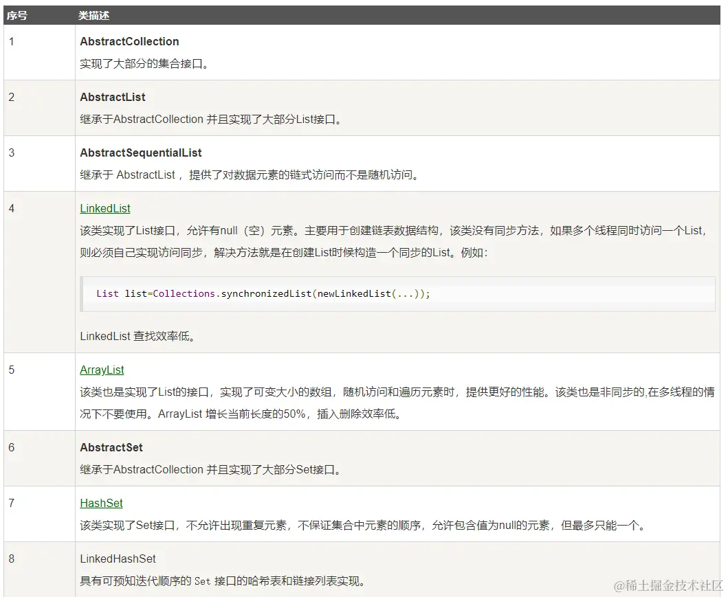 Java提供了一套实现了Collection接口的标准集合类。其中一些是具体类,这些类可以直接拿来使用,而另外一些是抽象类,提供了接口的部分实现。