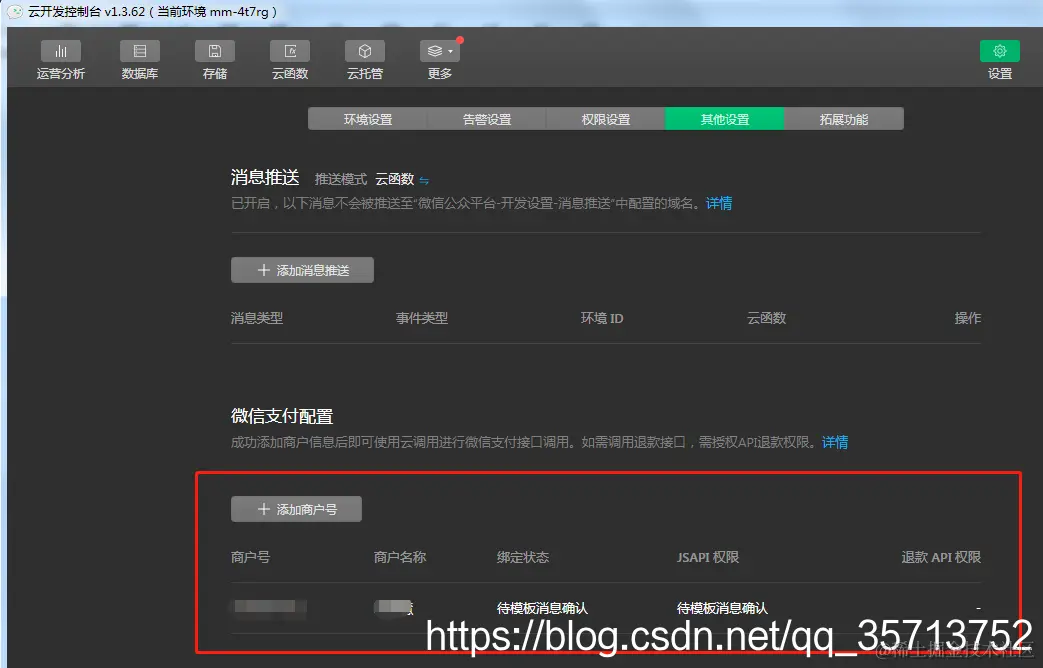 小程序云开发实现微信支付完整代码 a_靖 2021-03-18 152 阅读1分钟 效果图: 资质 需要是已经开通了微信支付,且已绑定了商户号的小程序。 开通 在云控制台 -> 设置 -> 全局设置中开通。 二, 创建支付的云函数 1,创建云函数pay