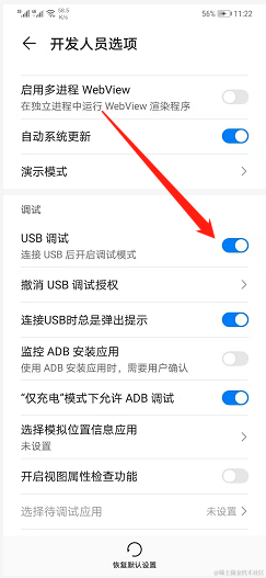1.打开手机的开发者模式,允许USB调试,手机操作流程,进入设置-关于手机,长按版本号(开启开发模式),然后按图操作,下拉屏幕发行已连接 USB 调试,手机端就暂时不用再操作了