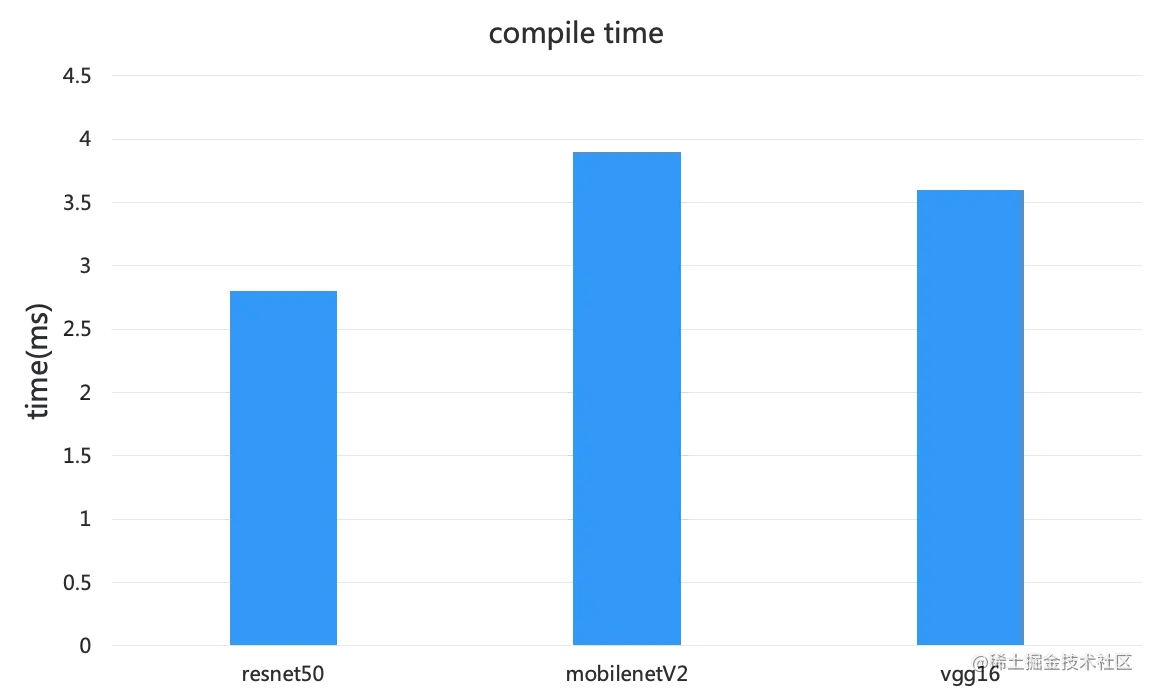 如果打开了 JIT 支持,那么天元首次运行的时候会有一次 JIT 编译的过程。JIT 编译耗时跟具体的编译的后端以及模型有关,如图 10 所示 resnet50 耗时 2.7 毫秒,mobilenetV2 耗时 3.9 毫秒。