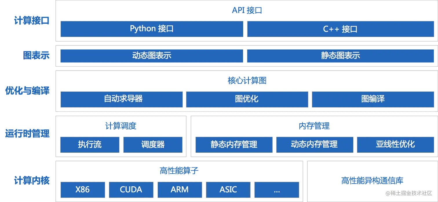 - 训推一体,不管是训练任务还是推理任务都可以由天元一个框架来完成。