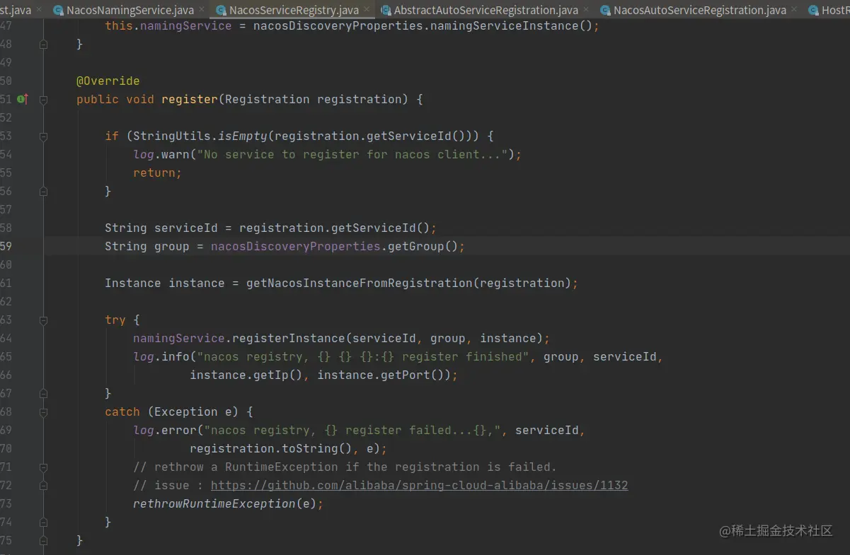 springcloud注册nacos服务是从此处入口: