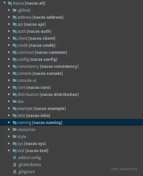 - distribution模块: 主要是打包nacos-server的操作,使用maven-assembly-plugin进行自定义打包