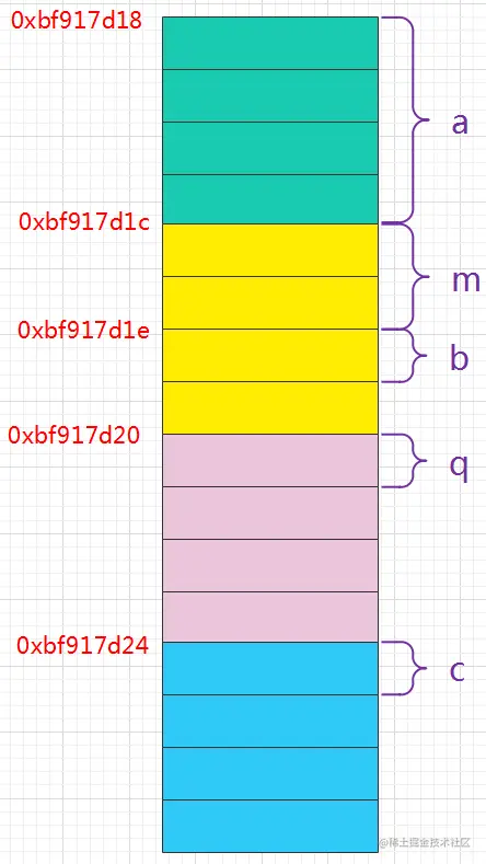 默认情况下结构体成员会字节对齐,详细分布见下图
