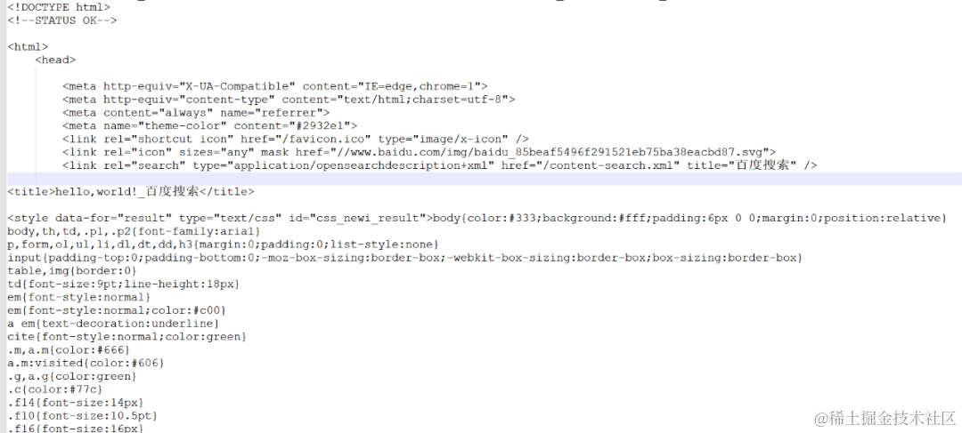 以上内容输出的就是网页的基本信息,它包含 html、json、图片、视频等,如下图所示: