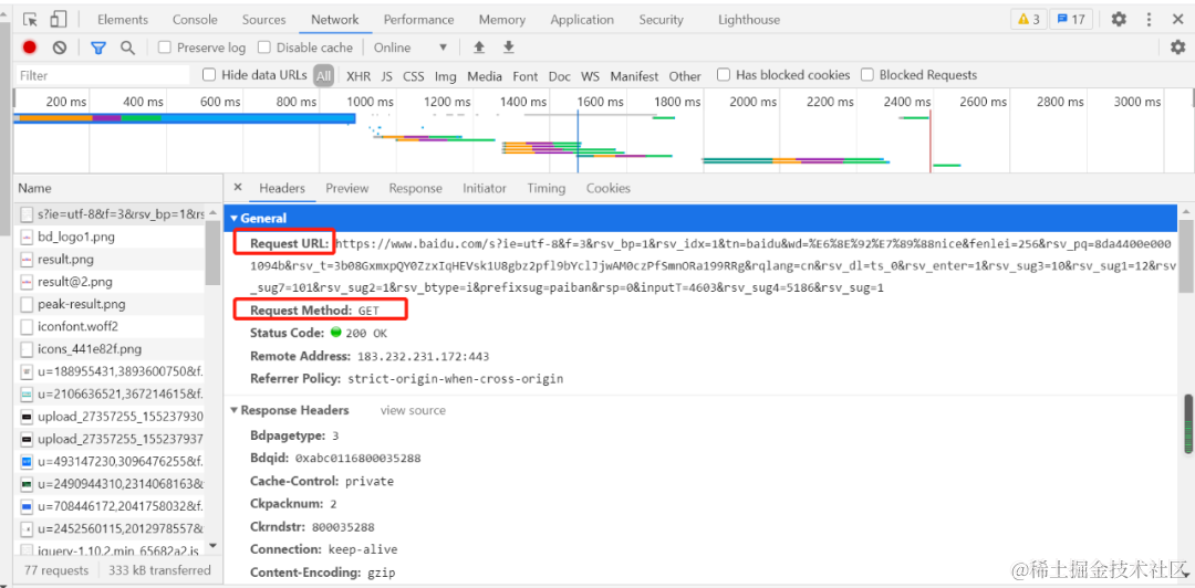 例如:抓取百度网址的数据请求信息如下: