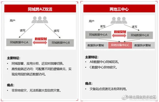 ① 极致高可用: 两地三中心架构,跨Region数据实时灾备