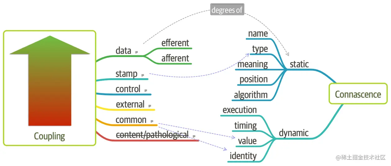 共生(Connascence)是架构师和开发人员的分析工具,它的一些属性有助于开发人员合理使用它。以下是对这些属性的一一描述: