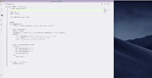 Cyberbrain可以保持你的工作流程不变。运行一个程序(从 vscode 或命令行,都可以),一个新的面板将被打开,程序执行情况全部以可视化展示: