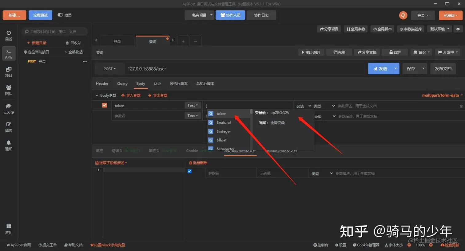 如何进行接口参数化? 清清青青 2021-03-19 374 阅读1分钟 做接口测试的时候,有些请求参数都是重复的或者是可以随机的,那么就需要我们进行接口参数化。 接口参数化第一步,定位获取需要参数化的参数 apipost提供了定位参数的方法,response.json(获取响应值的json),定位json中的参数 通过全局变量或者环境变量获取值 定位获取到需要的参数值之后就是引用了 apipost引用的方法是{{参数名称}}