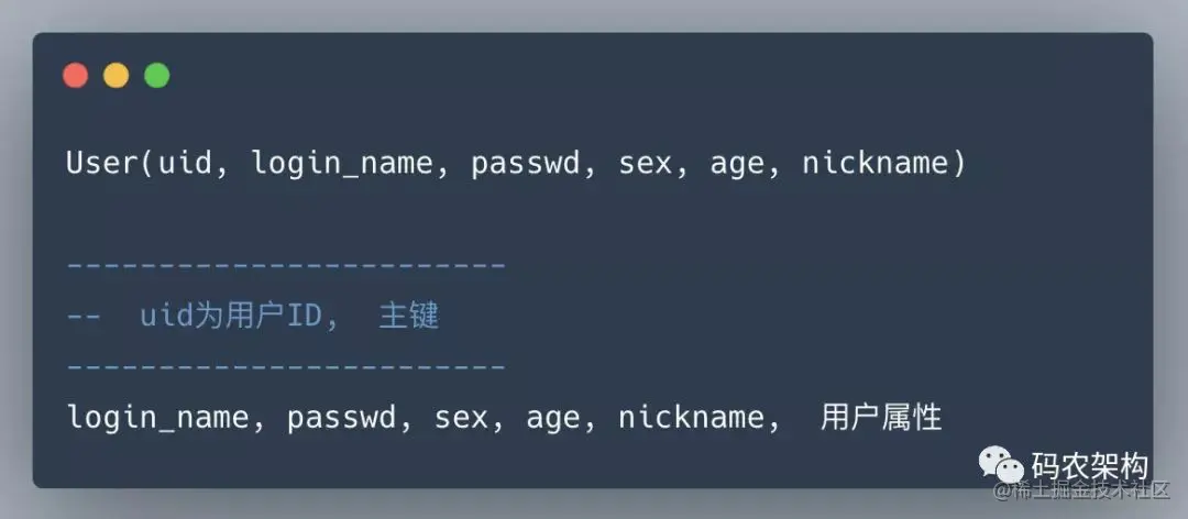 用户中心是一个非常常见的业务,主要提供用户注册、登录、查询/修改等功能,其核心表为: