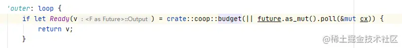 在tokio::block_on中,会执行budget的检测: