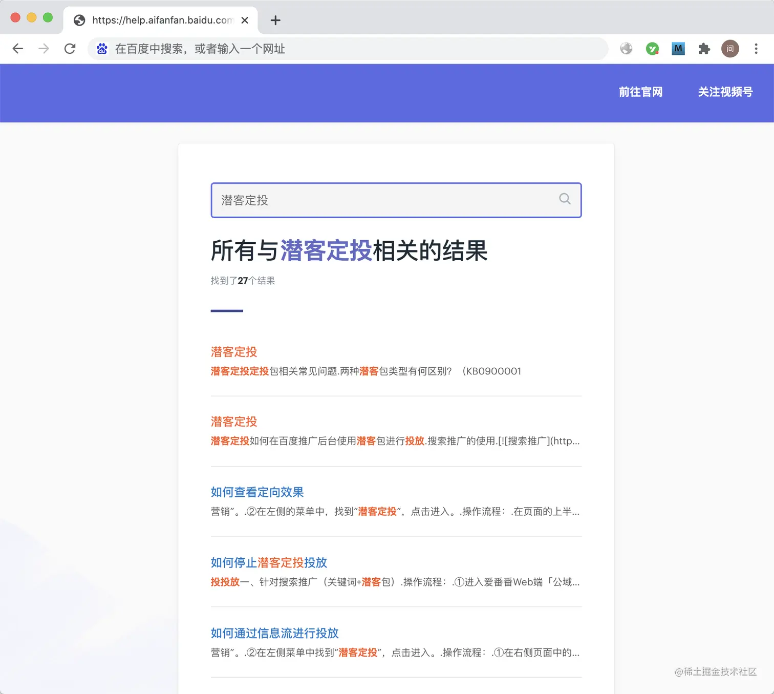 便于搜索:每个看得页面都设置了搜索框,采用全局搜索的模式,搜索结果高亮展示。