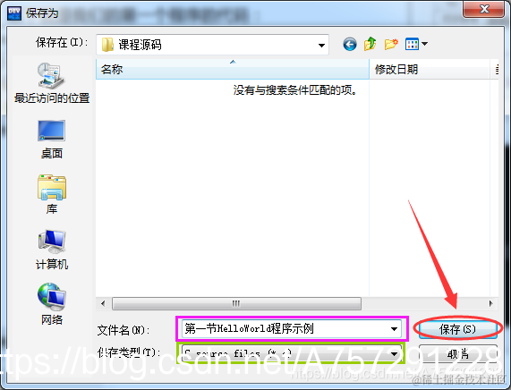🐰小C:接下来点击工具栏中的运行按钮会出现保存位置的选项框,你选择你要保存的位置就可以了,选择文件的保存类型是C语言文件,之后将自动运行你编写代码后生成的程序。