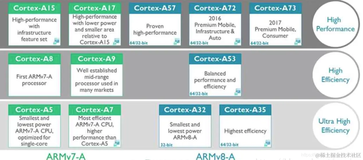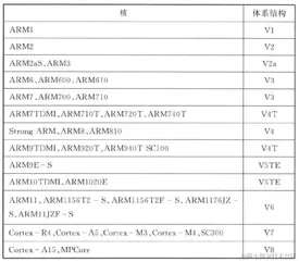 每个核使用的ARM体系结构的版本如下图: