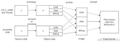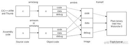 - armlink: 链接器,用来将目标代码,链接成可执行程序