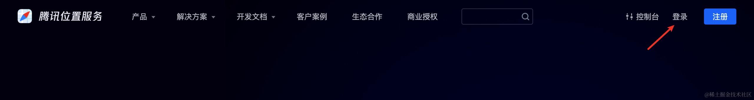 打开腾讯位置服务主页:lbs.qq.com,点击右上角的登录按钮: