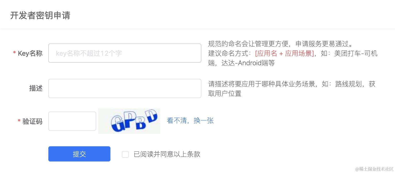 点击创建新密钥,填写Key名称、描述、验证码,等待审核通过: