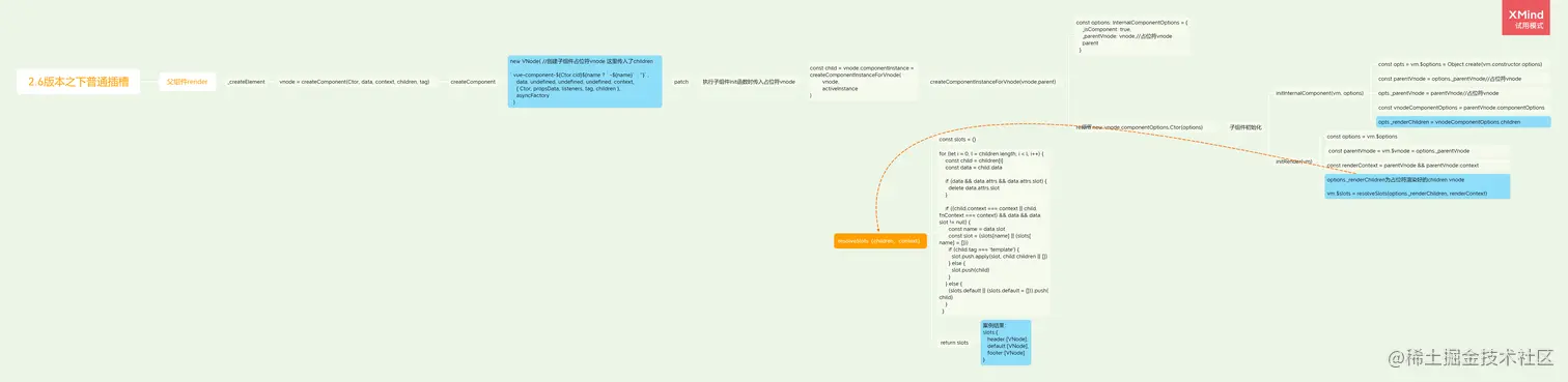 旧版本的普通插槽是在⽗组件编译和渲染阶段⽣成 vnodes ,所以数据的作⽤域是⽗组件实例,⼦组件渲染的时候直接拿到这些渲染好的vnodes。对于作用域插槽跟新版的一样。