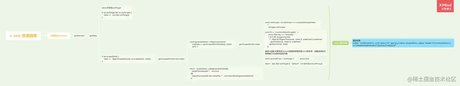 2.genSlot函数首先获取节点的slotName也就是插槽名,不存在设置为default,接着如果存在默认值就对默认值进行处理,最后返回_t拼接的render表达式。