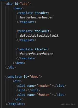 - 解析ast时会把插槽内容解析成ast插入到demo节点的children中。