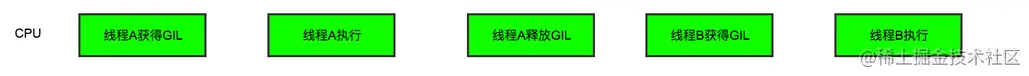 如果是在单核 CPU 环境下,多线程在执行时,线程 A 释放了 GIL 锁,那么被唤醒的线程 B 能够立即拿到 GIL 锁,线程 B 可以无缝接力继续执行,执行流程如下图: