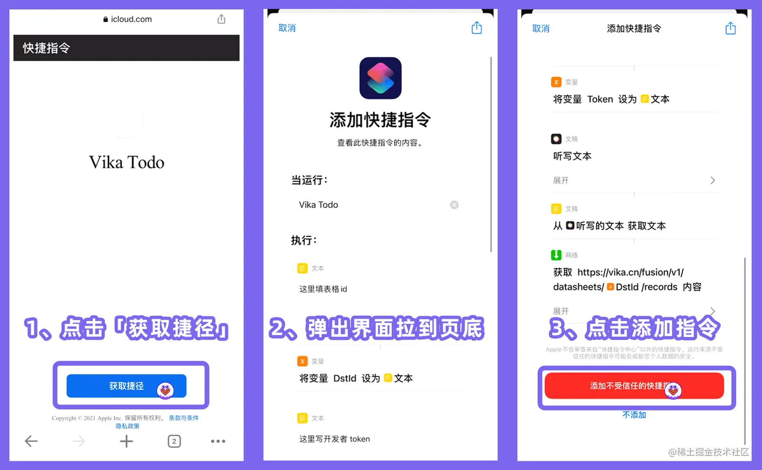 获取 vika 语音待办快捷指令