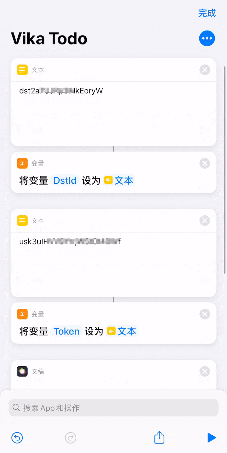 填写完开发者 Token 后在「文稿」中设定「允许语音识别访问」,点击右上角「完成」,即可完成「vika 语音待办快捷指令」的捷径配置👇