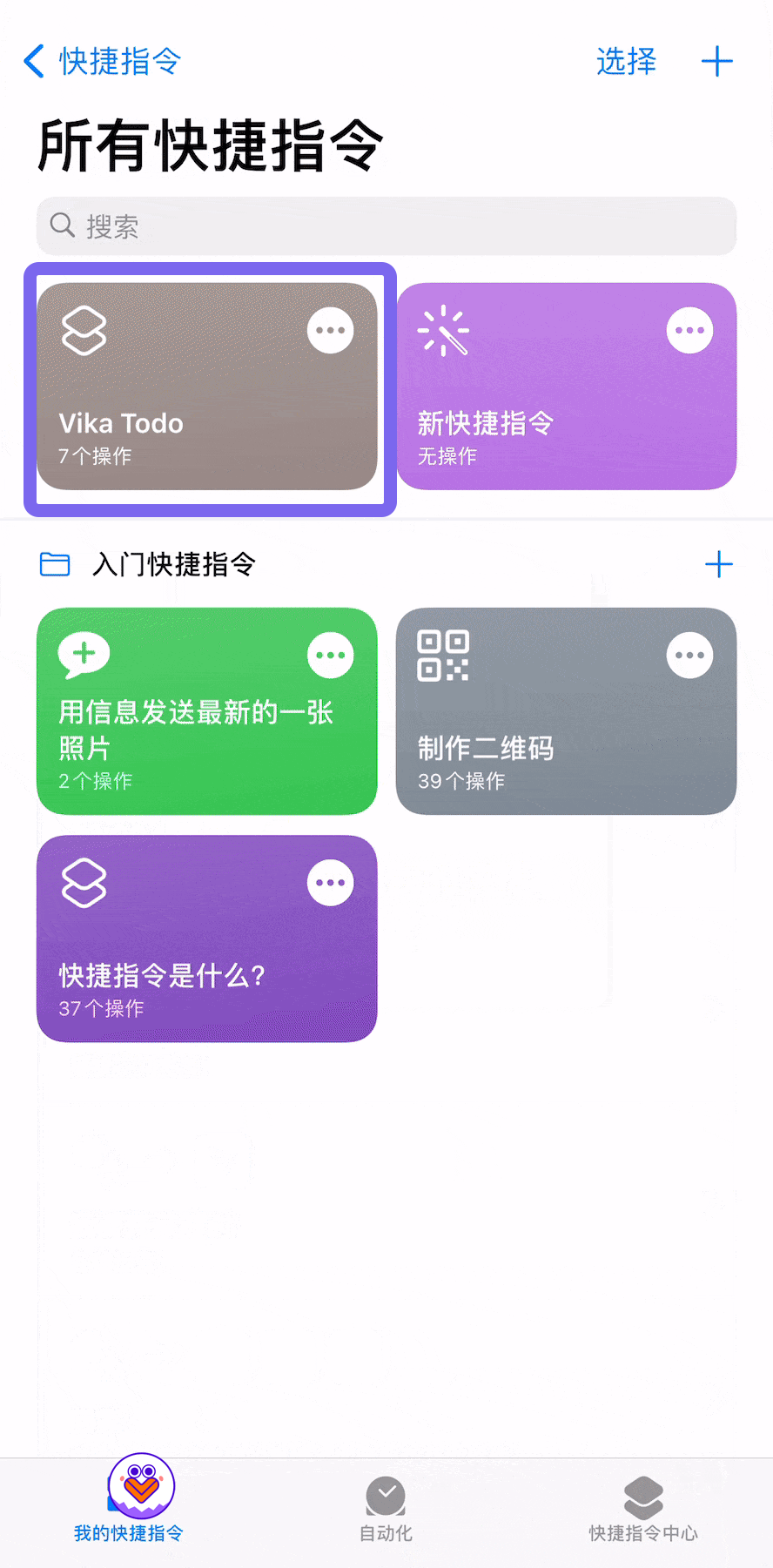完成指令添加后,打开「快捷指令」app,在「我的快捷指令」中,找到刚刚保存的「vika 语音待办快捷指令」。