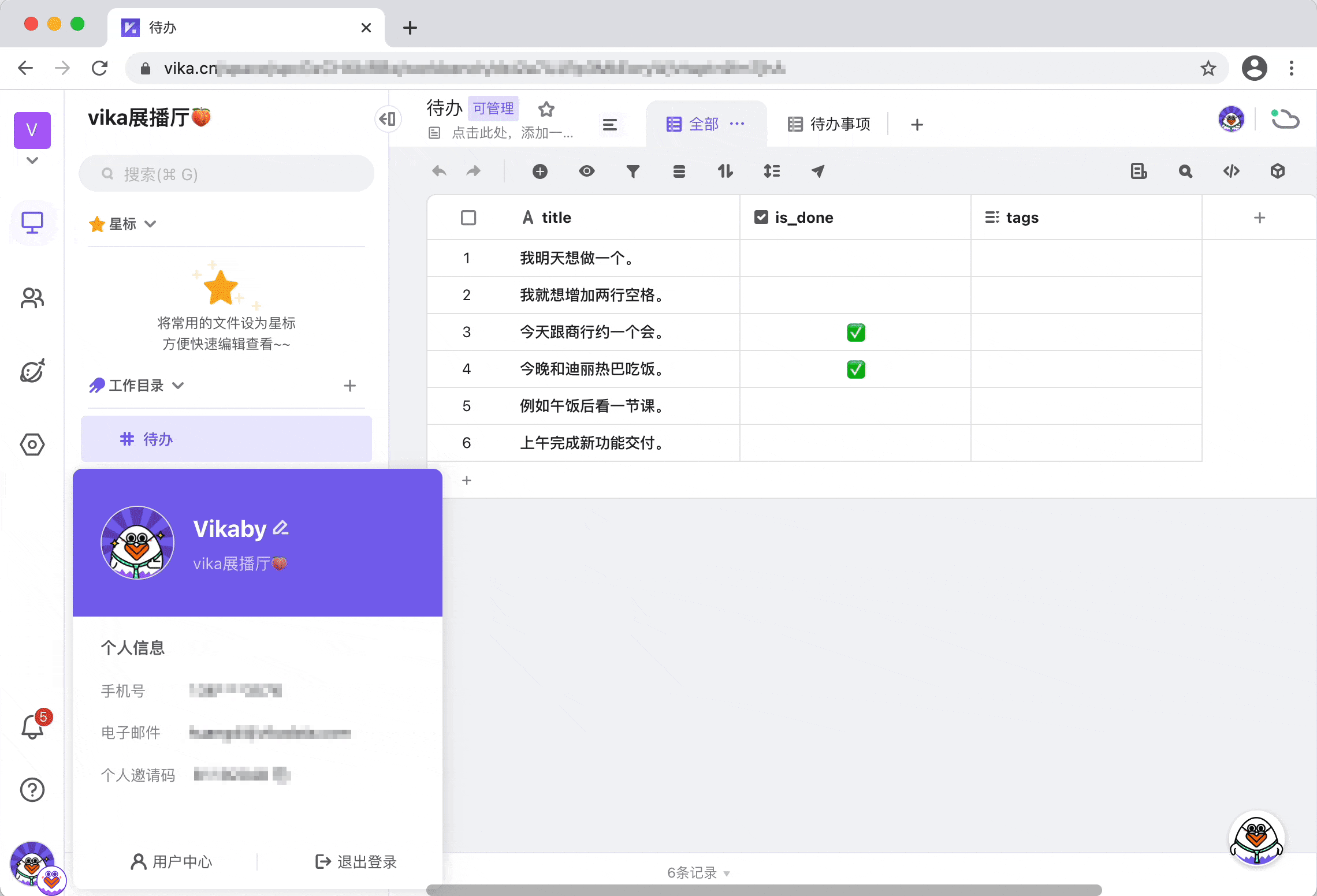 通过语音,将事项快捷录入到 vika 维格表中。