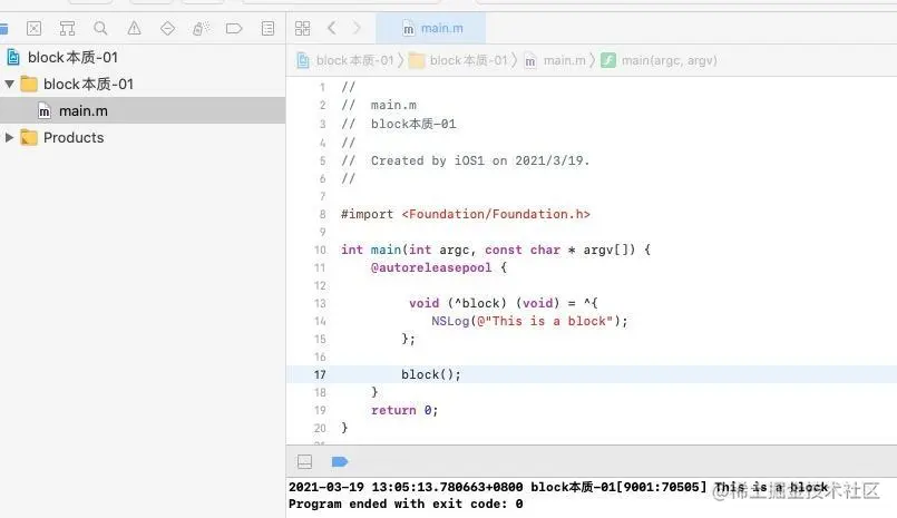 接下来带你轻轻松松解读源码,先了解block的本质,我们先创建一个最简单的block如下;