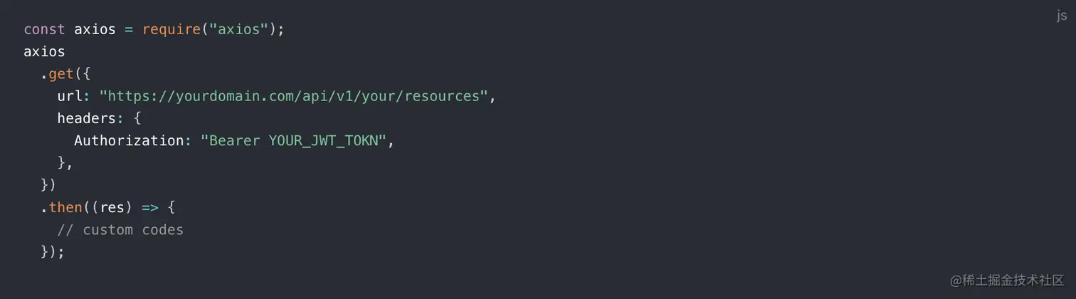 获取到用户信息之后,你可以得到用户的身份凭证(用户信息的 token 字段),你可以在客户端后续发送给后端服务器的请求中携带上此 token, 以 axios 为例: